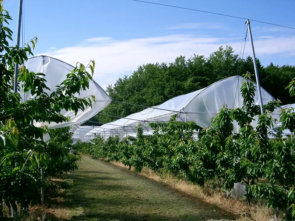 Süsskirschen neigen kurz vor der Ernte bei Regen zum Aufplatzen (Rissbildung). Das Herry-Regendach hält die Bäume trocken, reduziert Ertragsverluste und sorgt für höhere Marktfähigkeit – mehr verkaufsfähige Früchte in gleichbleibender Qualität.