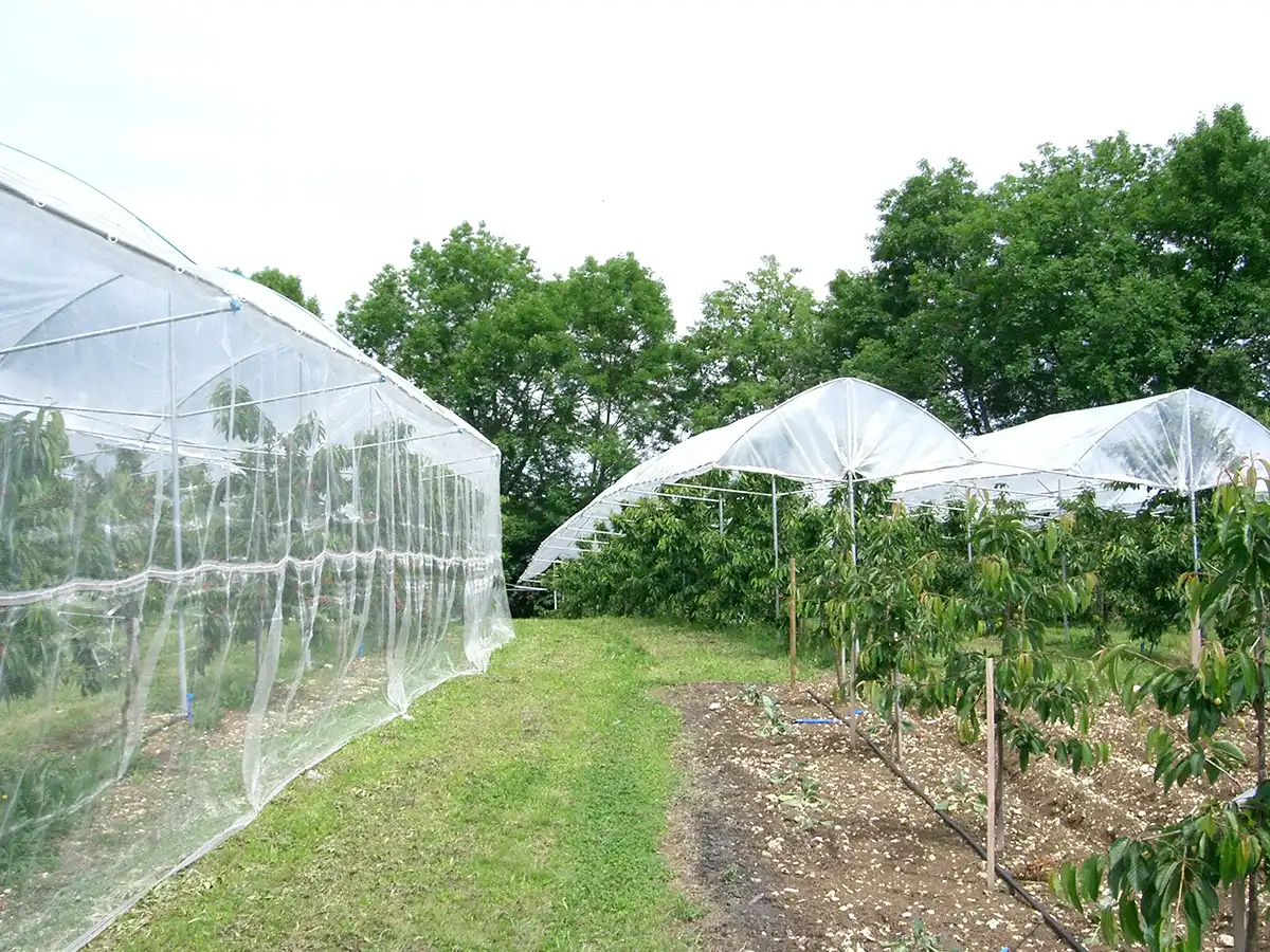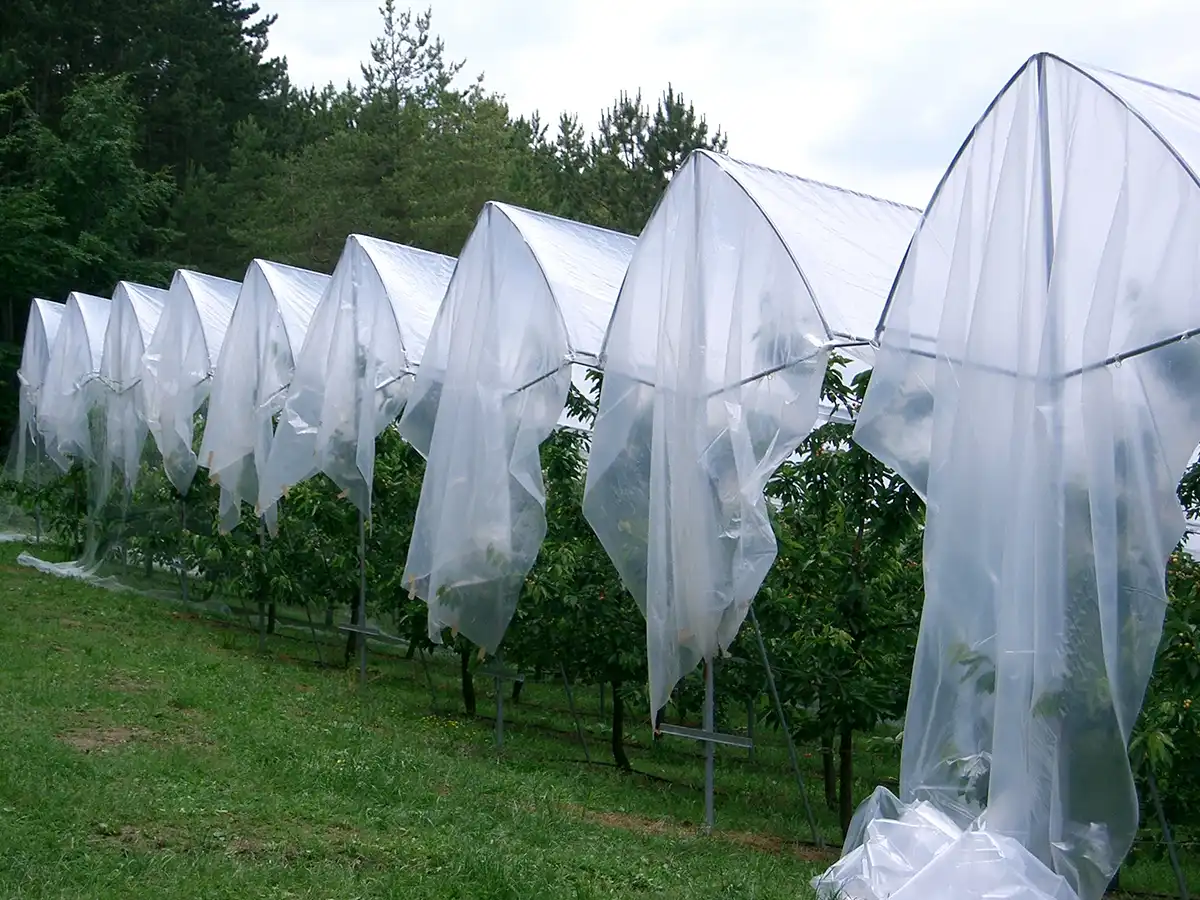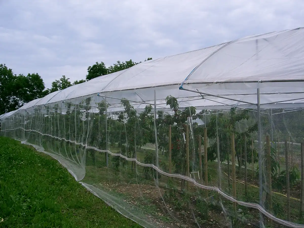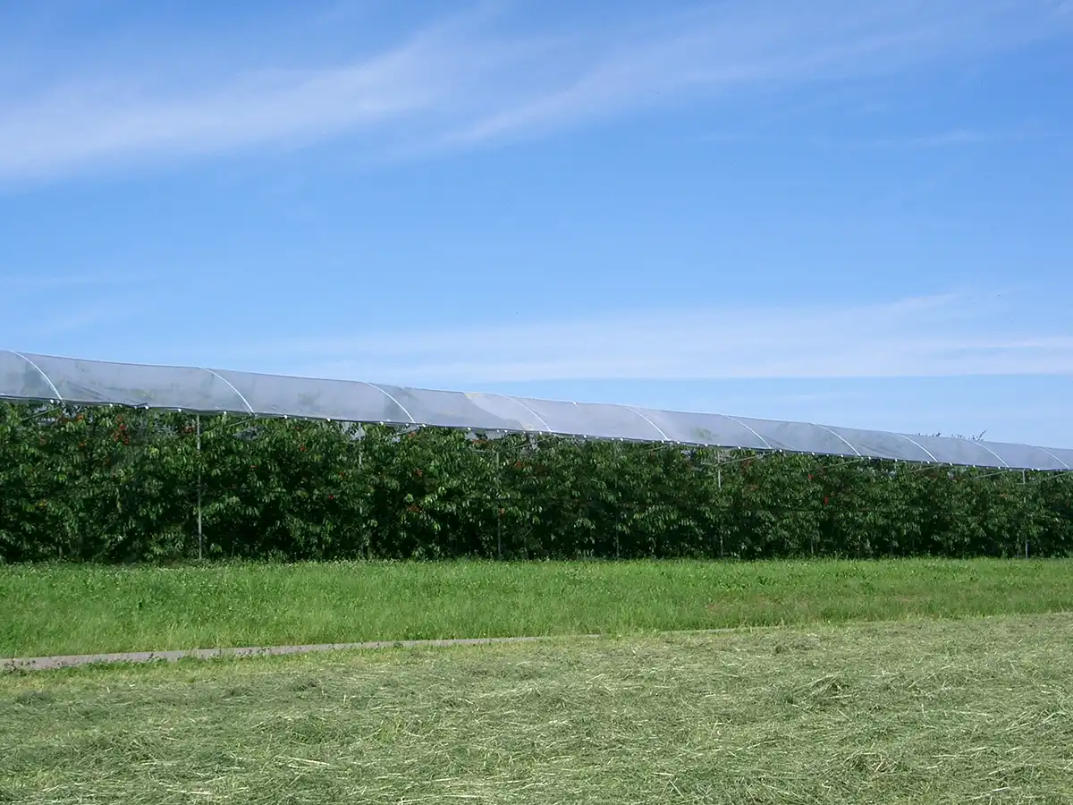 Ja. Das System ist mit Insektenschutznetzen kombinierbar (z. B. gegen Kirschessigfliegen) – für eine komplette Schutzlösung Ihrer Anlage.