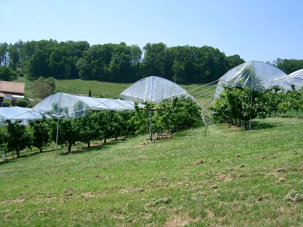 Die Modelle Cherry 320 und Cherry 350 wurden speziell für den professionellen Kirschenanbau entwickelt. Die Stahlpfosten werden mit Magerbeton im Boden fixiert und können bereits bei der Pflanzung gesetzt werden – inklusive Löcher für Spanndrähte als Erziehungsgerüst. Der Dachaufbau erfolgt bei Bedarf, typischerweise nach 2–3 Jahren, wenn die Erträge stimmen. So bleiben Sie flexibel in der Investitionsplanung und profitieren von maximaler Funktionalität zur richtigen Zeit.